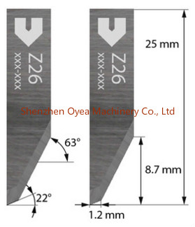 This high quality generic set of 2 blades is suitable for Zund S3, G3 & L3 digital cutters using EOT and POT tool heads. These flat oscillating blades have a cutting angle of 65°and a maximum cutting depth of 8.7 mm. These blades are suitable for woven materials, textiles, leather, corrugated cardboard, felt, rubber and sandwich board. These high quality generic blades correspond to Zund part number 3910317, also called Z26 blades.